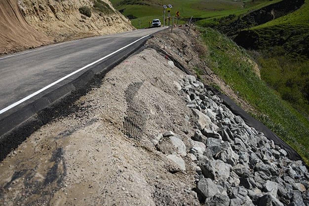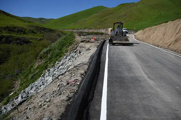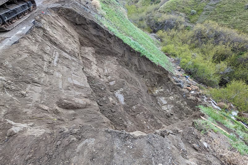 An emergency repair project for Alameda County, Patterson Pass Road had the roadway shoulder erode during heavy storms.