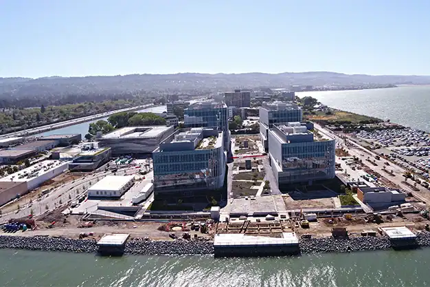 Burlingame Point is a progressive commercial development built on waterfront land that used to be the home of the Burlingame Drive In that was closed and demolished in the early 2000’s. The 18.13 acre site consists of 4 office buildings, a 5 level parking garage, and a 2 level Amenity building. This project is not only one of the largest office developments in the San Francisco Bay Area, but will provide improved public access to the San Francisco Bay and Sanchez Channel that includes beautifully landscaped walking paths and open plazas. Facebook was so intrigued by the design and community aspects of this project that they signed a lease for the entire complex prior to construction completion.