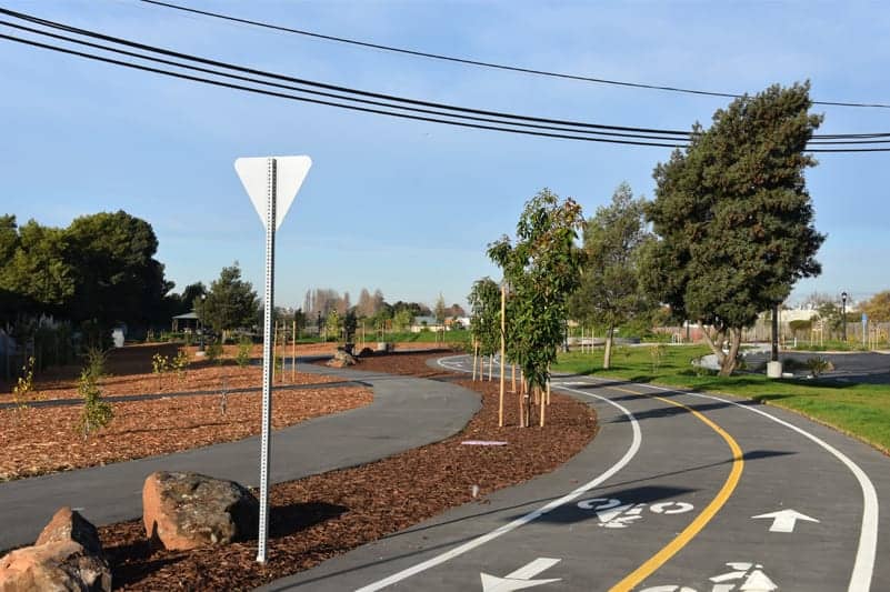 Our crews installed the first half mile portion of the Cross Alameda Trail, a four-mile walking and cycling path. The next phase of the cross trail will be a 0.9-mile segment along Ralph Appezzato Memorial Parkway. Upon completion, it will stretch from the former Alameda Naval Air Station in the west of the city to near the Fruitvale Bridge in the east.