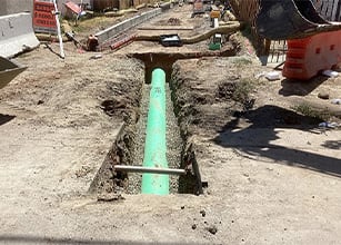 The project began with the demolition of five deteriorated alleyways, followed by the installation of a new underground storm drain system. A pervious paver drainage solution was introduced to reduce surface runoff and promote on-site infiltration. Together, these improvements help manage stormwater more efficiently while improving the safety and longevity of the alleyways.