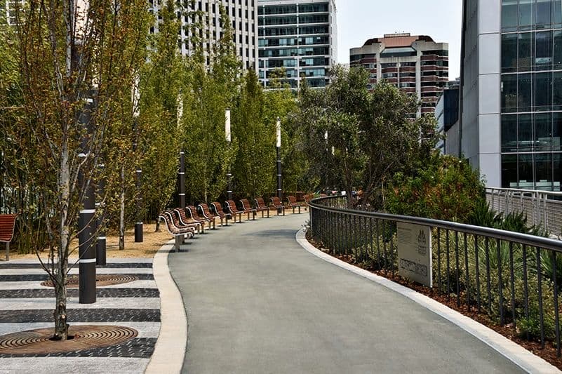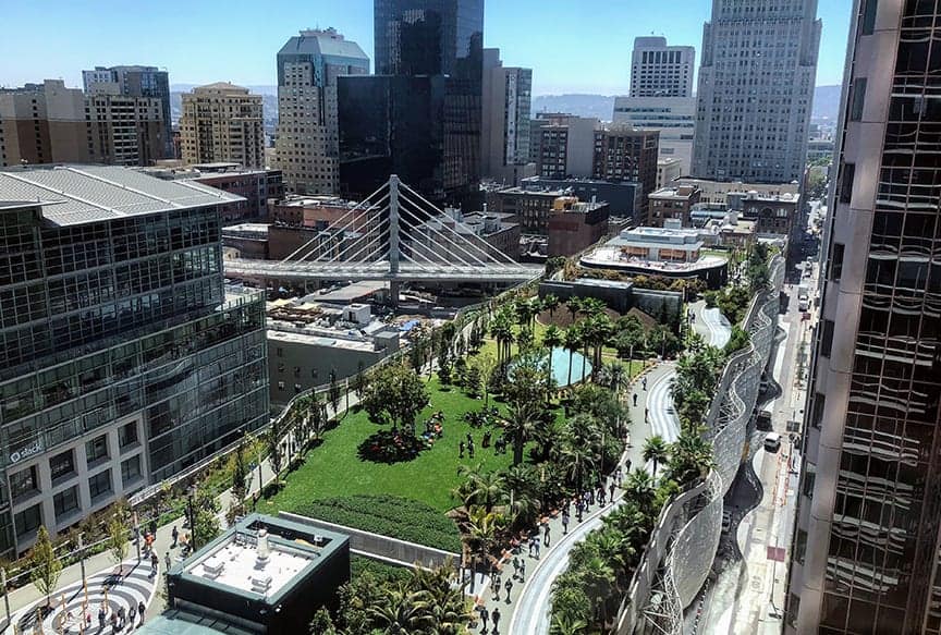 As a 1,400 foot long rooftop park, it was quite an undertaking to accomplish this project. Not only is it a lovely public space for everyone to enjoy, the featured landscaping consists of plants from around the world. Much like the city of San Francisco itself, the diversity of the area is reflected in the variety of plants and species from different Mediterranean climates, such as a Chilean Garden, South African Garden, Australian Garden, etc. Along the walkway a water feature notifies visitors when a bus has arrived at the station down below.