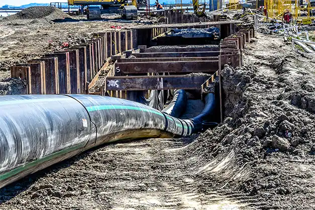 The purpose of this project was to relocate sewer utilities to make way for the construction of new residential developments by William Lyon Homes in the area. Significant dewatering was installed and water was filtered and treated prior to disposal. Our team installed 3,000 linear feet of twin 36-inch HDPE pipe (6,000 linear feet total). The project also included the installation of 150 linear feet of 36-inch HDPE pipe within a 48-inch steel casing under an Alameda County Flood Control channel, the construction of a jacking pit and a receiving pit, and the construction of 1,500 linear feet of concrete cap above existing 33-inch diameter RCP force mains.