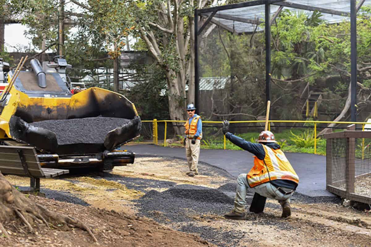 Crews removed approximately 4,500 square feet of existing asphalt, fine-graded the subgrade, and installed 3 inches of new hot mix asphalt, totaling about 80 tons. An additional 40 feet of new asphalt berm was also added to improve drainage and path definition. Despite limited access and time constraints, the team completed the work in just two days. While on site, McGuire and Hester also addressed several predetermined repair areas at the zoo’s request, helping to eliminate tripping hazards and enhance the overall visitor experience.