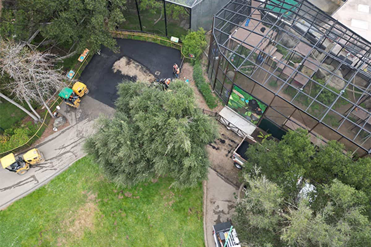 Crews removed approximately 4,500 square feet of existing asphalt, fine-graded the subgrade, and installed 3 inches of new hot mix asphalt, totaling about 80 tons. An additional 40 feet of new asphalt berm was also added to improve drainage and path definition. Despite limited access and time constraints, the team completed the work in just two days. While on site, McGuire and Hester also addressed several predetermined repair areas at the zoo’s request, helping to eliminate tripping hazards and enhance the overall visitor experience.