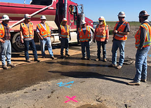 After a quick walk through with the crew, we broke ground exposing the line and dewatering before 4pm. By 7pm our crew had the pipe fully exposed and was able to determine the severity of the hit. As the day got late, the crew added light towers to the jobsite and dewatered for 3 hours until they were able to cut and patch the pipe with a welded steel buttstrap. The operation was completed with the pipe under chlorination before midnight the same day. The next morning we assisted the city in pressure testing the line and putting it back in service within 24 hours of the initial hit.