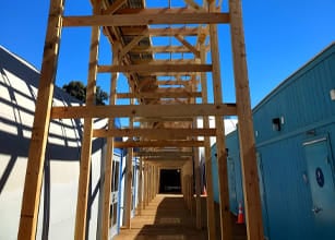 Aside from our scope, we helped the City when they were in a jam with other shelters. We built a 15 foot trellis for another shelter, plumbed gas lines into one of their buildings, and built a storage area for all 5-6 navigation centers. This 84-bed center is part of a 1,000 bed rollout by 2020.