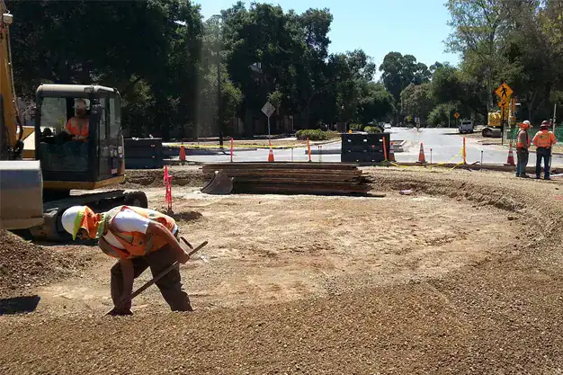 Our work consisted of the demolition of existing four way stop intersections and the installation of new roundabouts. Crews installed new storm drain, curb & gutter, sidewalk, roadway paving, and included the installation of all new irrigation and landscaping.