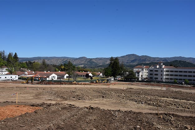 A new building is being constructed that will house a new 240-bed addition in the California Veteran Home, Skilled Nursing Facility and Memory Care project set for Yountville, CA. The project’s design was inspired by the veterans, the program, and the place. The facility is modeled around home environments with personal bedrooms designed for veteran care. Common areas provide a living room feel with natural lighting and views while multiple outdoor terraces are accessible throughout. Circular paths to designed “neighborhoods” helps members find their way around easily and a centralized elevator simplifies navigation. The project will include features such as enhanced HVAC systems, radiant floor heating, displacement air cooling, circadian lighting, touches plumbing fixtures, outdoor terraces, an outdoor physical therapy area, and COVID-19 prevention strategies. Sustainable features will also be included such as mass timber, advanced daylighting strategies, and a high-performance mechanical system and energy envelope.