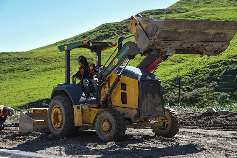 Patterson Pass had approximately 30′ of the roadway shoulder eroded away during heavy storms. The scope of work consisted on excavated out the eroded roadway embankment, install fabric reinforcement and placing Class II and Class V rock slope projection. After the slope was secured 70′ of the roadway was paved and a new AC dike was added to help control runoff in future rain events The project geography and limits of repair required the use of specialty excavator with long reach capabilities. The steepness of the slope made access an issue and employees had to repel down when working at the bottom of the slope.