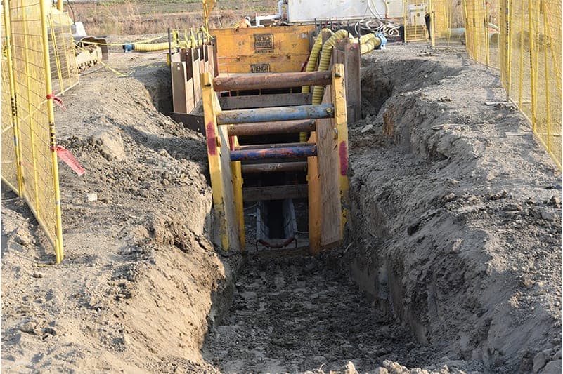Deep excavation of 30’ plus was performed at the insertion and receiving pits. The initial project design utilized pipe bursting methods, but due to conditions encountered in the field shoring options were modified, methods were changed, and the project switched to strictly sliplining to improve the existing facilities. Additionally, 6 manholes were modified/ upgraded at various other locations along the trunk main utilizing Armorock polymer manhole insert material. At the completion of the slipline work, a 0.75 mile section of access road was restored via lime treating with an AB cap. The project was performed under tight schedule constraints to complete the work and restoration prior to the wet season.