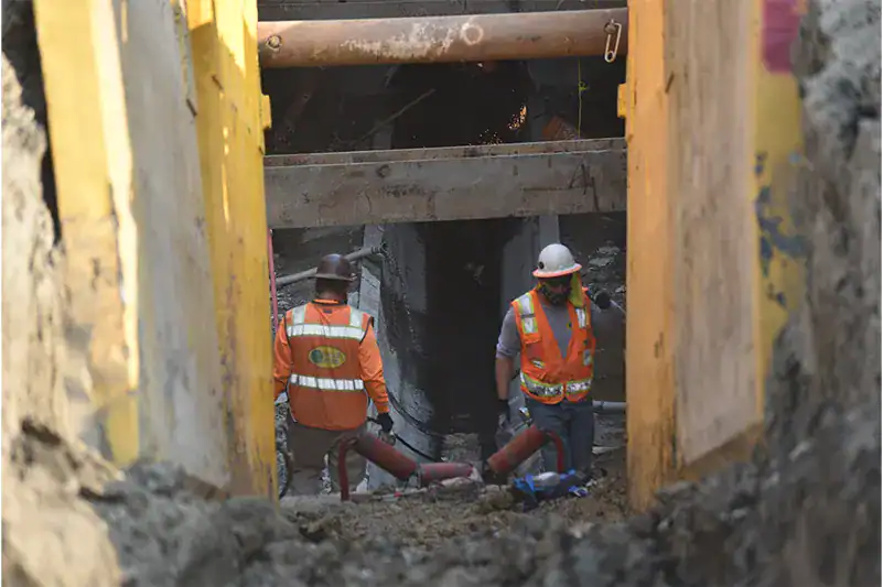 This project involved the rehabilitation of the sewer trunk main into the City’s wastewater treatment plant. A 900’ section of 42” HDPE pipe was sliplined inside the existing 66” RCP trunk main up to the City’s treatment plant headworks. Bypassing the flows to the treatment plant proved to be problematic as the 66” influent line ran under an existing canal, as well as neighboring wetlands and Fish and Game requirements. The crews were able to design and construct a temporary bypass to control flows to allow for installation of the liner pipe. M&H resolved numerous design issues to facilitate construction including adjusting the location of the insertion pit. These changes helped both the City of Davis and McGuire and Hester expedite the project.