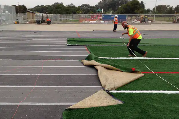 The play field can also be used for lacrosse, softball, youth baseball and has the ability to accommodate two full-size under 12 years old soccer fields. The field is striped for all different uses. In addition to the field, renovations included a new 28-space parking lot, new lighting and the reduction of the basketball courts to two half-courts.