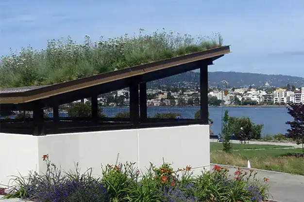 The ‘green’ design criteria were met through installation of a green roof, pervious concrete, and a decorative bio-swale; all designed to capture and filter runoff. The Boathouse and Park were re-dedicated in August of 2009 amid compliments from the City and public.