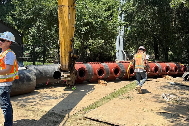 McGuire and Hester is delivering critical utility and drainage improvements as part of the Natomas Reach A Levee Improvements project in Sacramento. Working alongside FORGEN and the U.S. Army Corps of Engineers, the team is relocating sewer and water mains, installing bypass systems, and upgrading key infrastructure at Pump Plant 1B and City Sump 160. Construction is taking place along an active levee, requiring tight coordination, phased access, and careful sequencing to ensure service continuity and regulatory compliance. McGuire and Hester collaborated with FORGEN, the Army Corps, and Reclamation District 1000 (RD 1000) to address unforeseen conditions that necessitated a 100 cubic feet per second (CFS) bypass for stormwater drainage during the pump replacement. This crucial bypass system, not initially part of the project scope, was successfully proposed and integrated as a change order, demonstrating McGuire and Hester’s ability to provide a constructible and cost-effective solution to maintain acceptable stormwater runoff levels throughout the pump replacement.