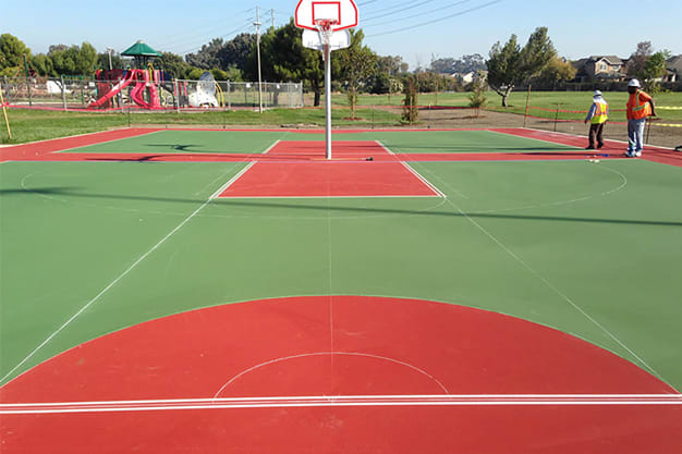 The play field can also be used for lacrosse, softball, youth baseball and has the ability to accommodate two full-size under 12 years old soccer fields. The field is striped for all different uses. In addition to the field, renovations included a new 28-space parking lot, new lighting and the reduction of the basketball courts to two half-courts.