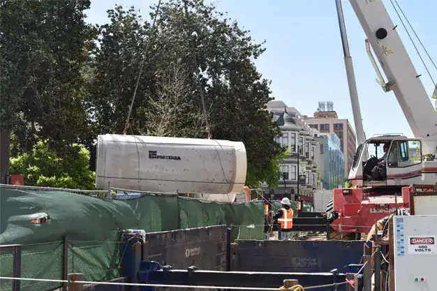 The 9th Street Sewer Improvement project in downtown Sacramento was developed to allow additional storm drain and sewer capacities in the heart of downtown Sacramento. The project consisted of installing approximately 2,200 linear feet of 60- inch RCP combined sewer and storm drain system.