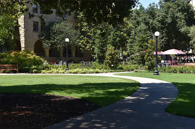 McGuire and Hester removed an existing parking lot and relocated it to the side of the building in order to install new landscaping directly in front of Encina Hall. We also closed down a portion of Serra Street to vehicular traffic and created a new extension of Serra Mall including asphalt pavers, decorative concrete bands and ramps, along with granite curbs. We are currently installing the first granite bike circle at the intersection of Galvez and Serra Mall which will be the first of many to come.