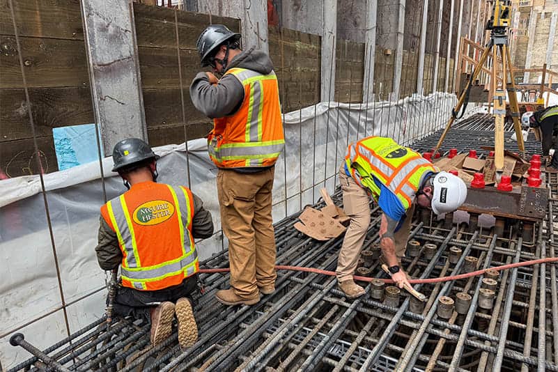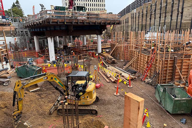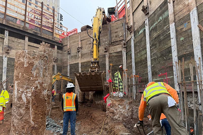 As part of the Integrated Form of Delivery team, our team took charge of the design and construction of the entire civil scope, encompassing the demolition of existing infrastructure to pave the way for a new hospital tower. McGuire and Hester’s responsibilities include the installation of underground utilities (water, firewater, storm drain, sewer, electrical, and medical gas), development of a new oxygen tank yard, implementation of beam and lagging shoring, soil nail wall construction, tie backs, temporary logistics, signalized intersection management, mass and structural excavation, landscaping, hardscape, grading, and paving. All these activities are conducted on an extremely busy hospital campus with ongoing operations, showcasing our commitment to precision and operational sensitivity.